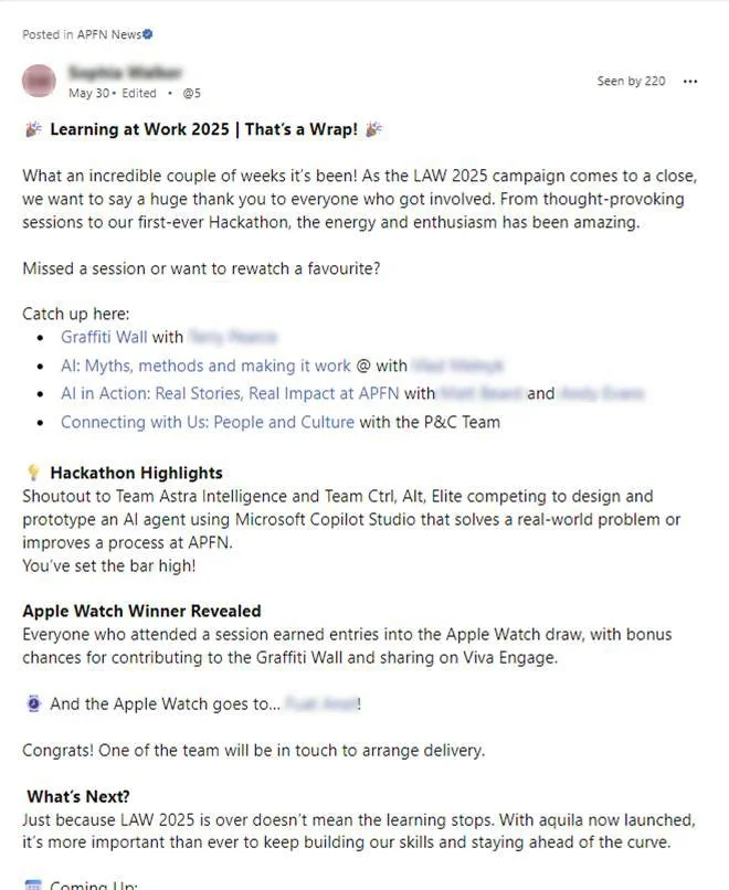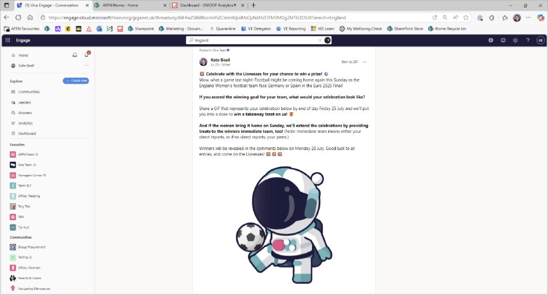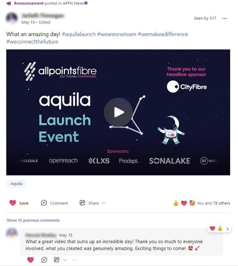 The decision to centralise news in APFN News community was made in late 2023 when Viva Engage was launched across AllPoints Fibre Networks. It a decision that’s clearly paid off!